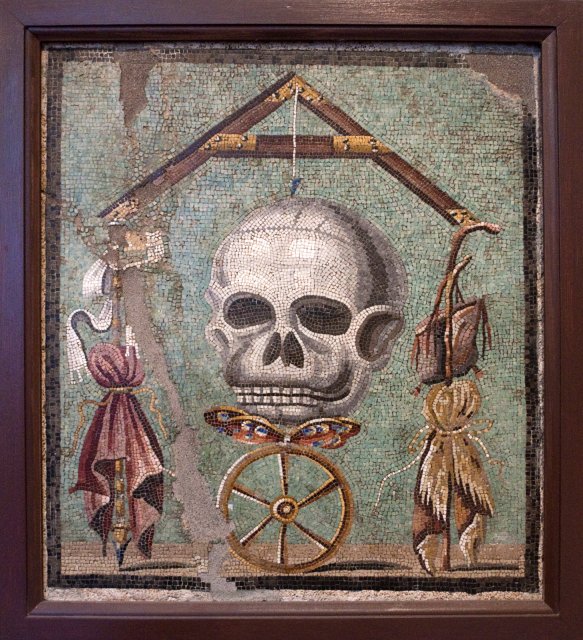 This emblema is one of the most striking for the clarity of its allegorical representation. The topic presents death as the great leveller who cancels out all differences of wealth and class. The weight is death (the skull) bellow which are a butterfly (the soul) and a wheel (fortune). Symbols of wealth and power are on the left and poverty on the right arms of the level.