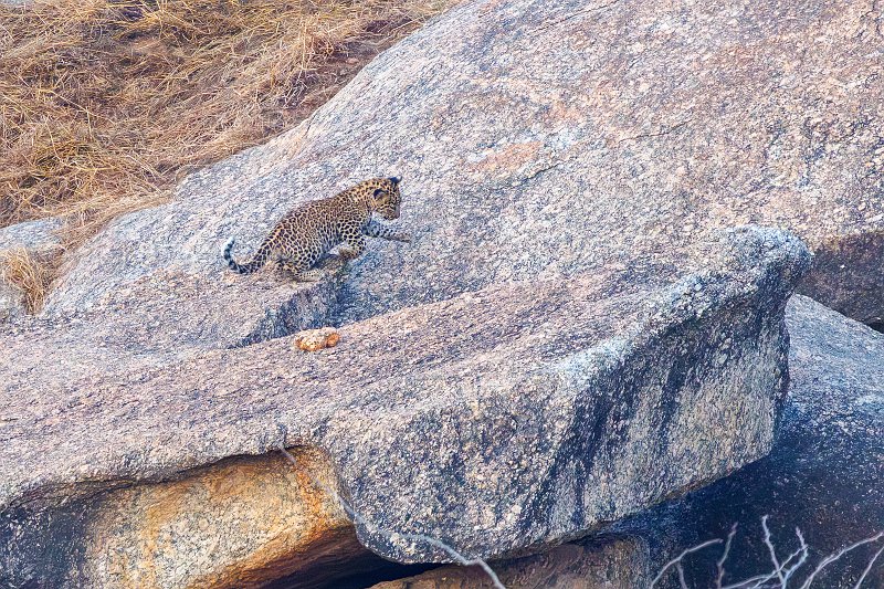 Cub Jumping over Granite Rocks, Jawai Bandh Leopard Conservation Reserve