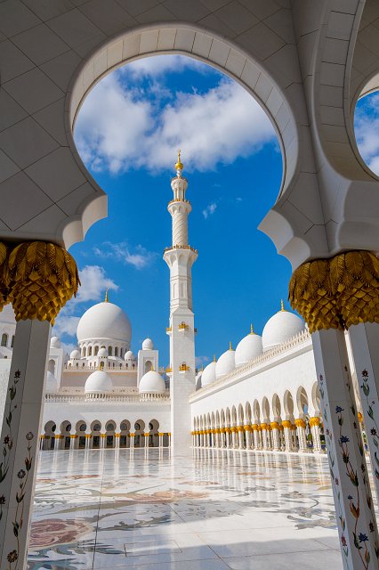 Minaret and Inner Courtyard, Sheikh Zayed Grand Mosque, Abu Dhabi, UAE