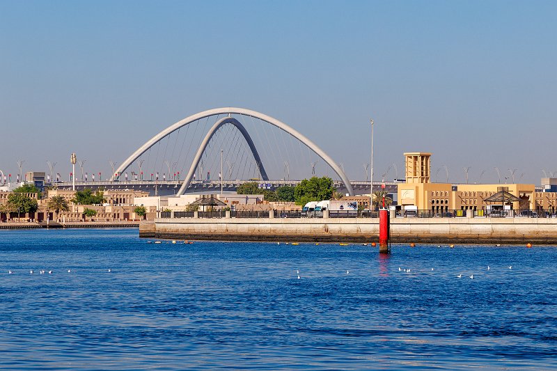 The Infinity Bridge is 300 m long, 22 m wide and sits 15.5 m high above the water level. Its infinity arch rises higher - some 42 m above the creek.